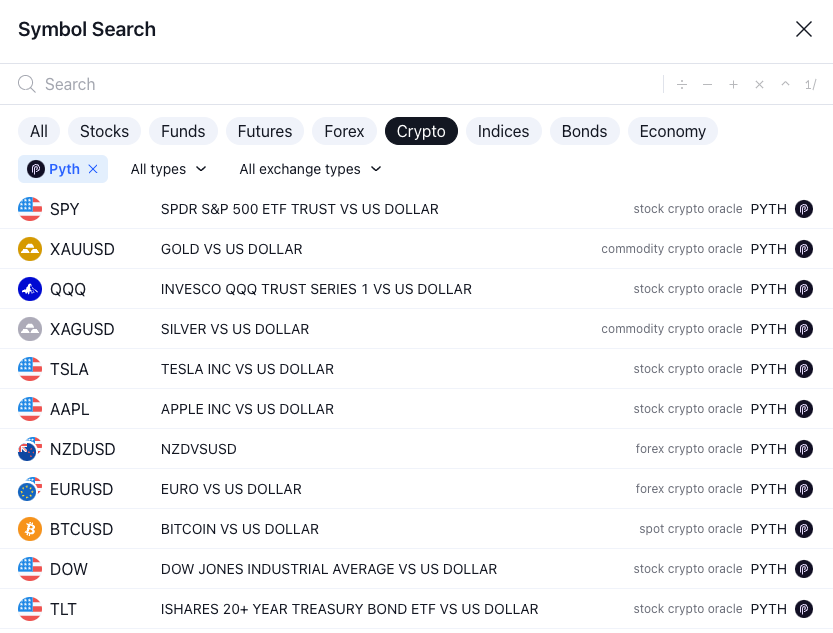 From a trader’s point of view, TradingView makes all the Pyth Price Feeds easily accessible.